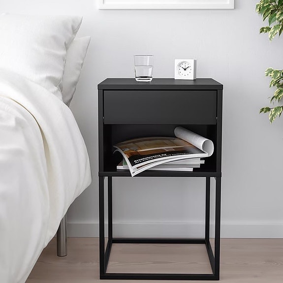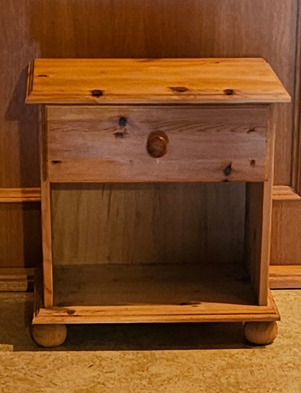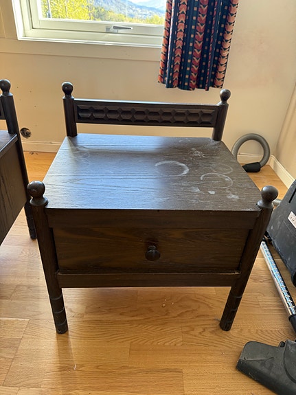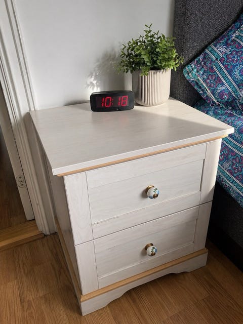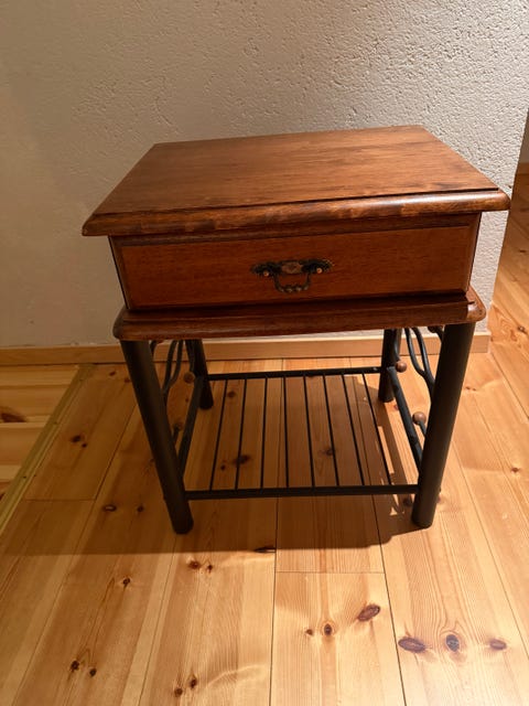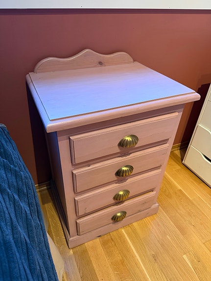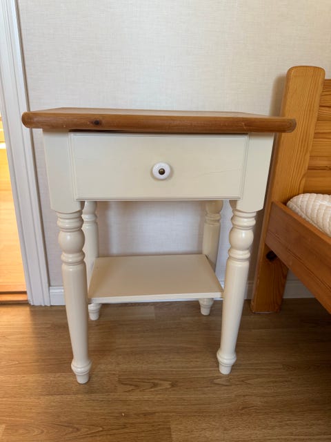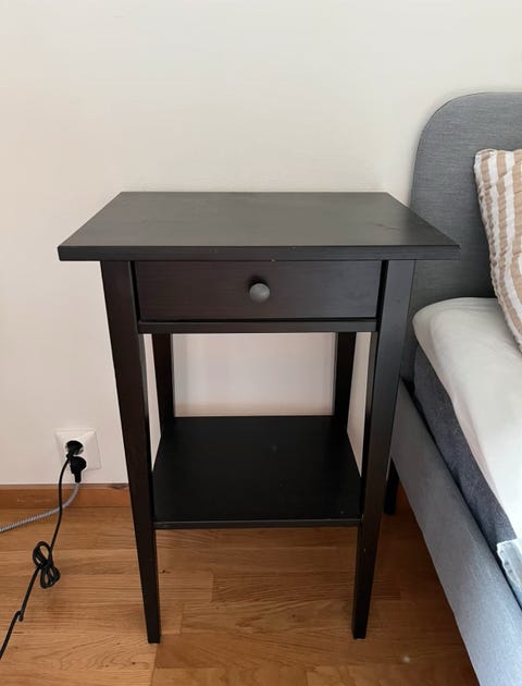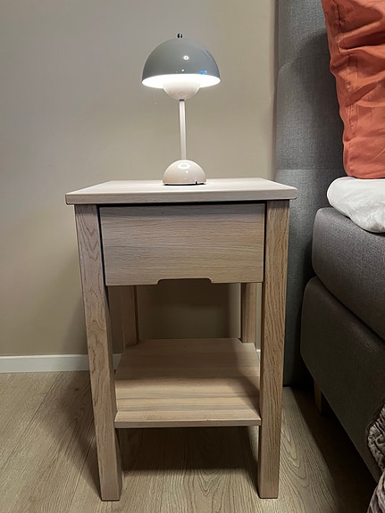 Nattbord i tre – praktisk med skuff og hylle til slags!