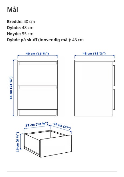 IKEA MALM nattbord med 2 skuffer 40x55 cm eikefiner