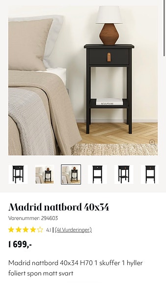 2 stilige nattbord. ILBRO fra Jysk. Pris pr. stk.