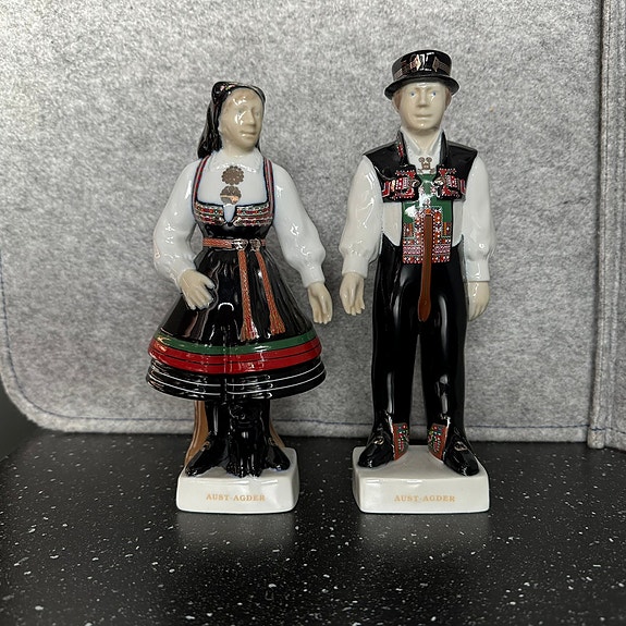 Flott Par i bunad, av porselen, håndmalt - nydelige detaljer