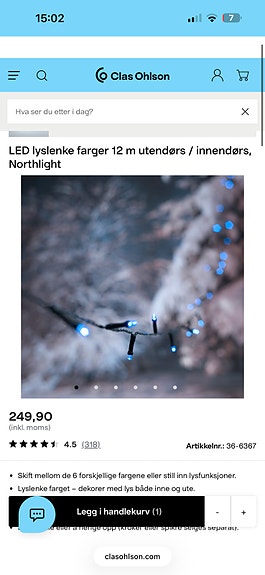 Nesten ny lyslenke! 5m og varme pærer. Selges billig!