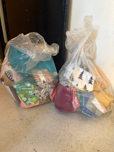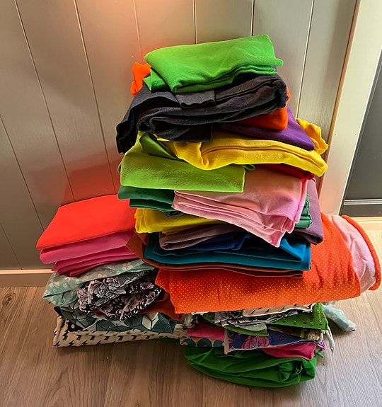 Stoffrester i ulike farger – sateng og mønstrede stoffer