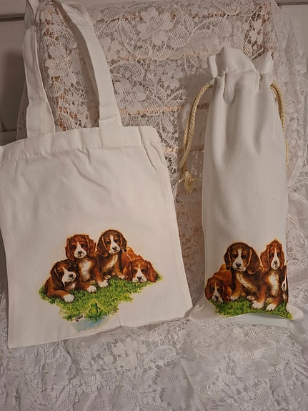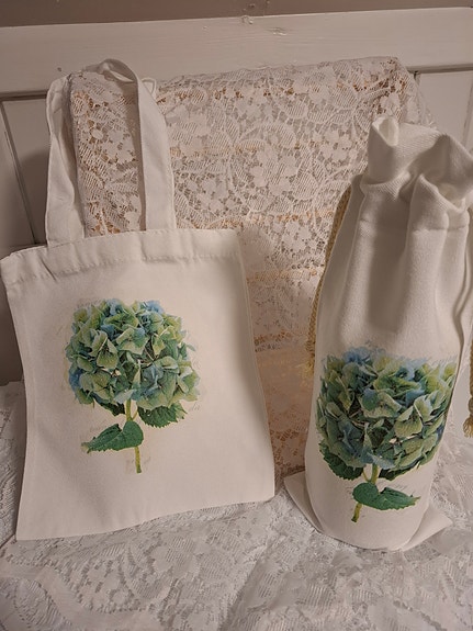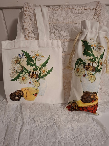 Lite handlenett, flaskepose ,grytevott og gryteklut
