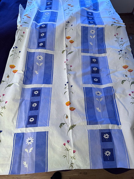 Sommerlig blått stoff 3,4 m – solid bomull/lin kvalitet, flott interiørtekstil