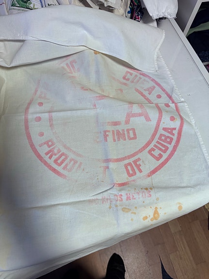 Vintage bomullsduk med «Product of Cuba – Café Fino» trykk