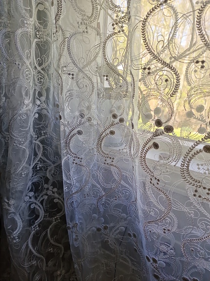 Hvite blondegardiner/ stoff