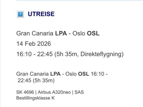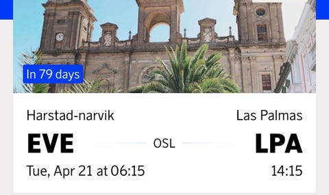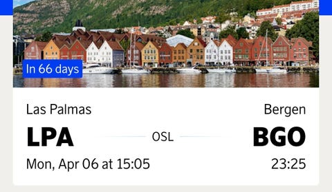 Las Palmas-Oslo- Bergen 2. påskedag