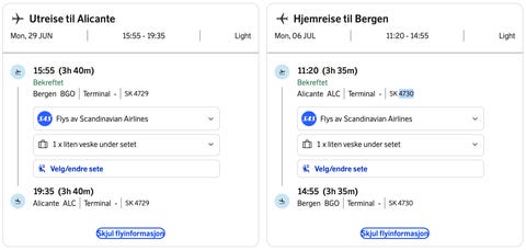Flybilletter Bergen - Alicante