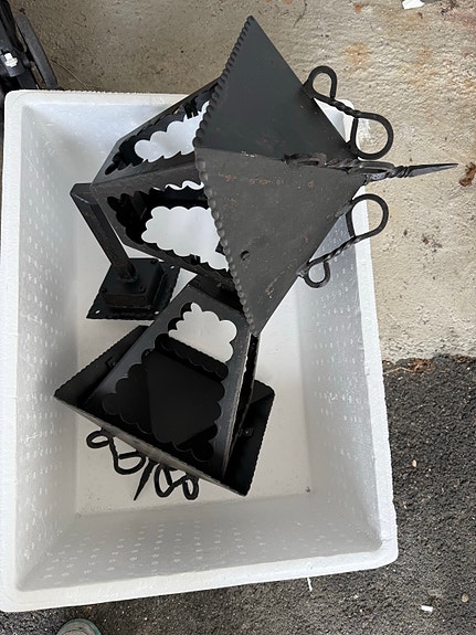 Håndlaget Smijern utelamper / vegglamper i svart metall - gies bort
