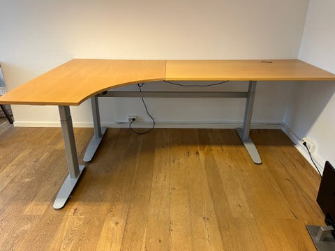 Stort og ergonomisk hjørneskrivebord med elektrisk hev/senk