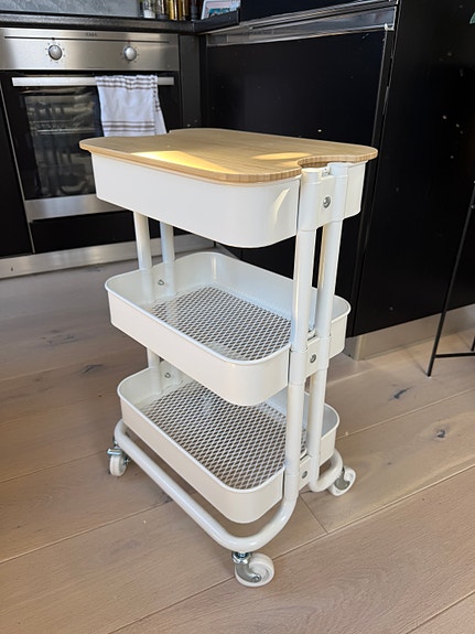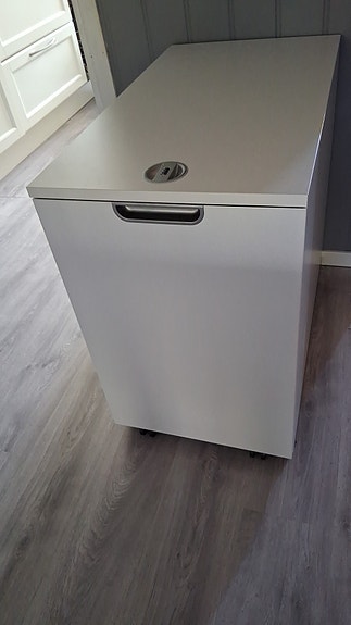 Praktisk skuffeseksjon på hjul i bjørk/lys eik