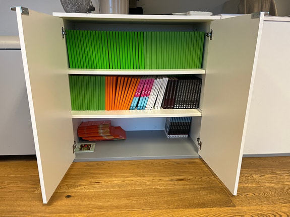 Pent og praktisk hvitt skap med dører – perfekt til kontor eller stue