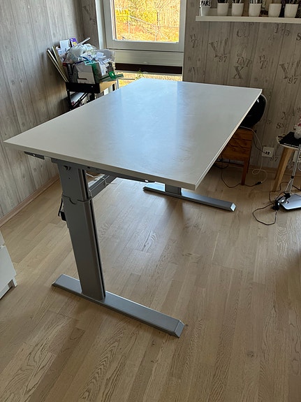Stabilt og tidløst skrivebord med høydejusterbare ben