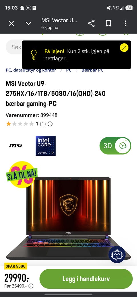 MacBook Pro 15" – i7 / 16 GB RAM – Pent brukt