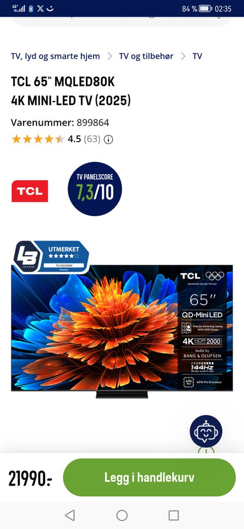 65 Tommer TCL TV flatskjerm