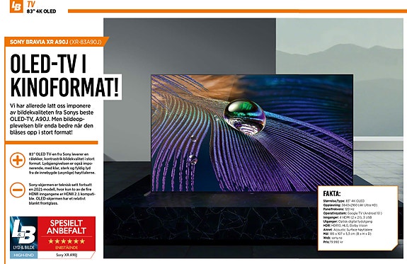 ny i eske SONY A80K high-end 4K/120Hz Oled-TV. Spar 10´000kr!