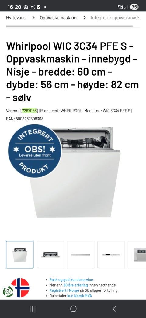 Integrert oppvaskmaskin