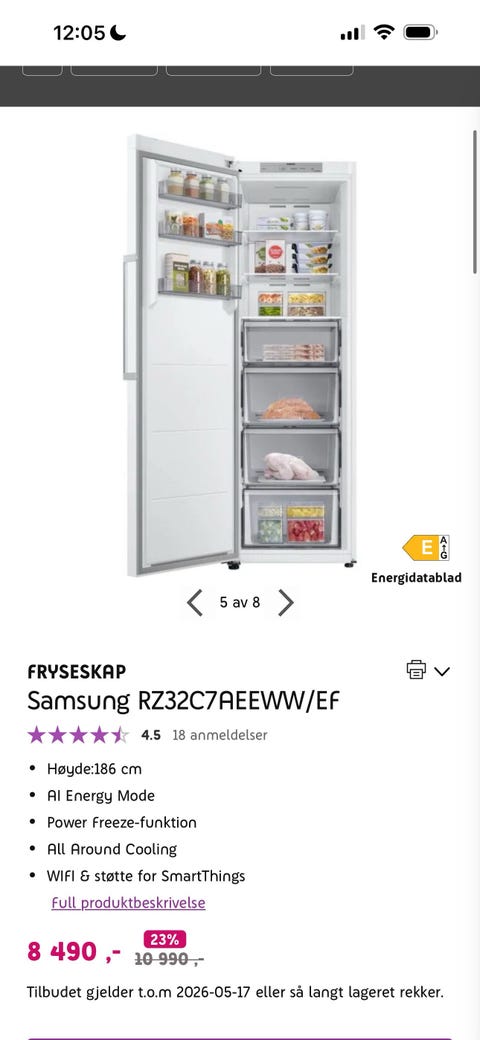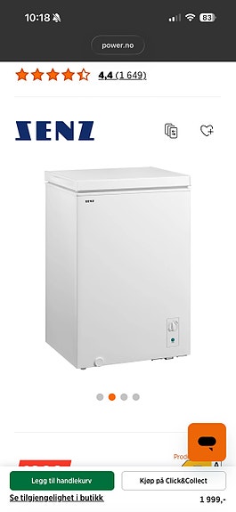 Fryser 144 cm høyt fra Senz med lagringskapasitet på 177 liter
