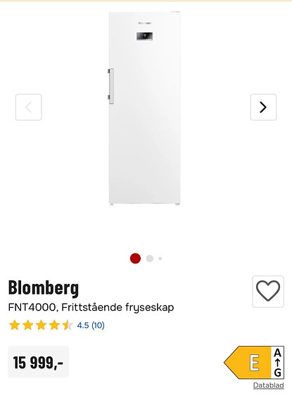 -50% Helt ny Blomberg FNT4000, Frittstående fryseskap 70CM/ 404LT/ garanti