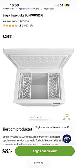 Nesten ny fryser (165L) m/ garanti & kvittering – SOM NY!