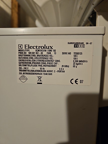Max Hvitevarer As /Toppmodell Electrolux fryseskap 180cm no frost med garanti