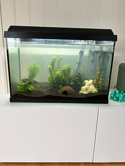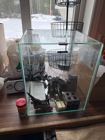 Liten akvarium på ca 20 L, med lys mm.