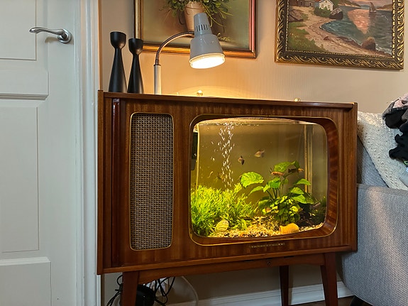 Vintage TV-møbel ombygd til akvarium