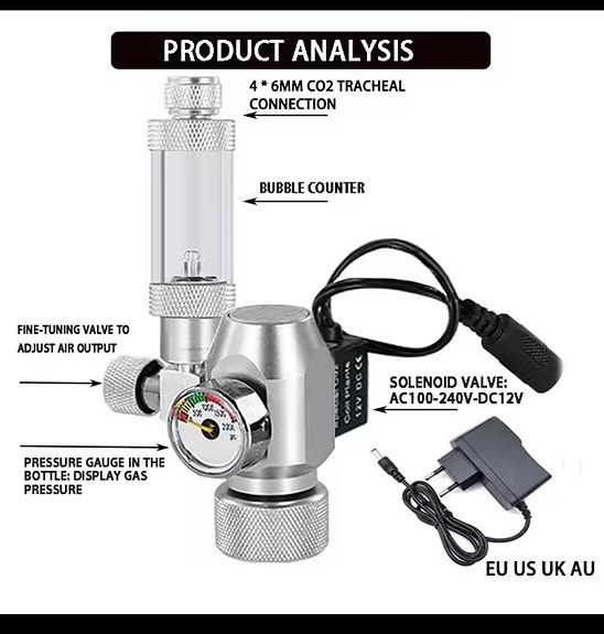 Akvarium Co2 system - passer til SodaStream flaske ( magnet ventil )