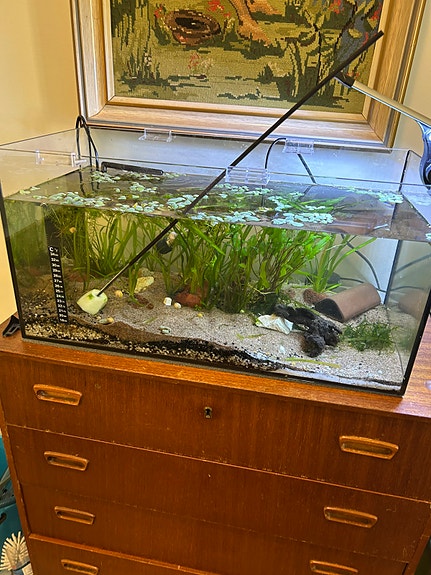 Akvarium med utstyr