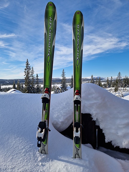 Rossignol alpinski 184 cm grønn med Randonee bindinger. Feller følger med.