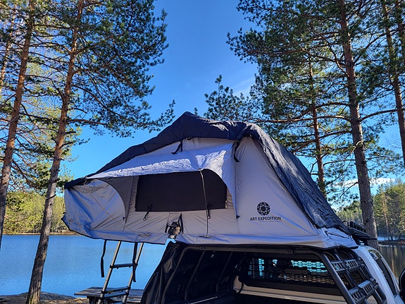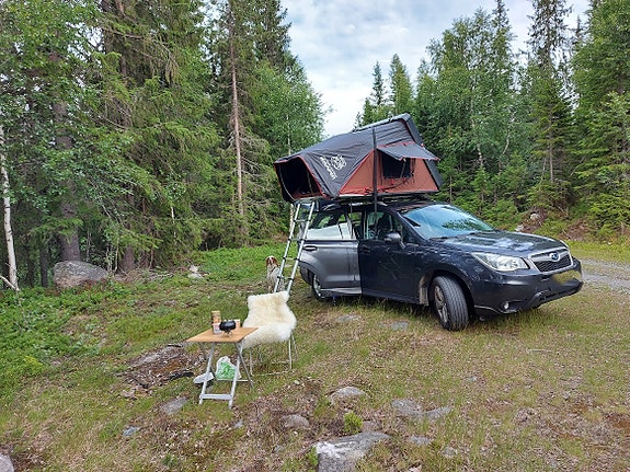 Biltaktelt ikamp med fortelt/aneks settes opp på en enkel måte.