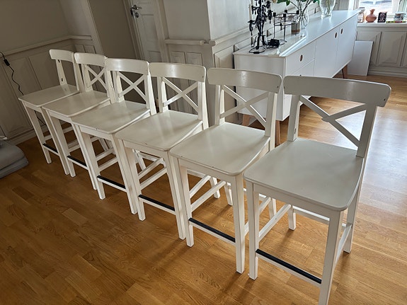 2 stk hvite IKEA FRANKLIN barkrakk/barstoler