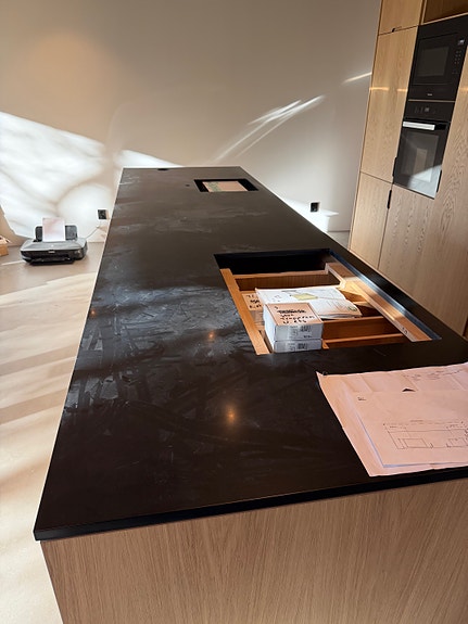 CORIAN Benkeplate for kjøkkenøy, sort, selges pga feilprodusert