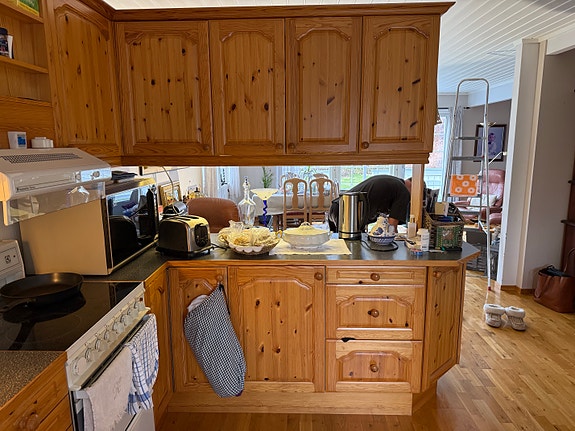 Heltre furu (Sigdal)kjøkkeninnredning med overskap, underskap og benkeplate