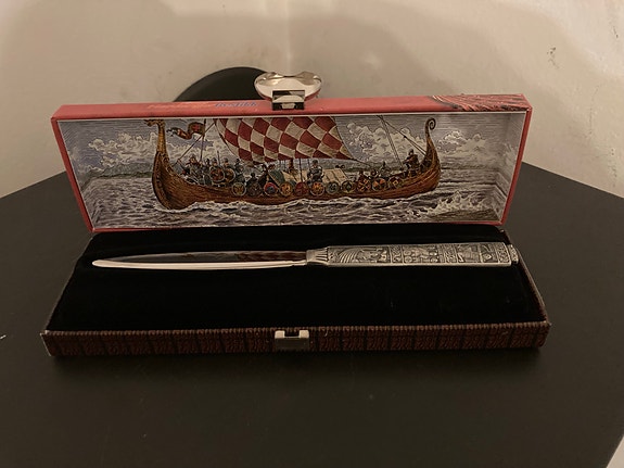 Hardanger Bestikk Konge Tinn brevåpner i etui