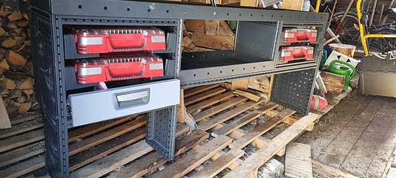 Bilinnredning / varebilinnredning med hyller og skuffer