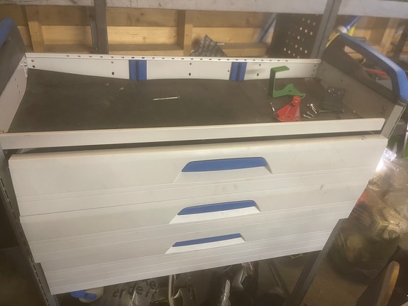 Bilinnredning verktøyreol med skuffer stål blå/grå