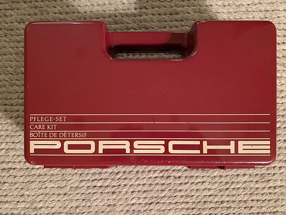 Original Porsche bilpleie koffert med innhold fra 1980-tallet
