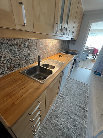 Kjøkkenbenk med blandebatteri og vask