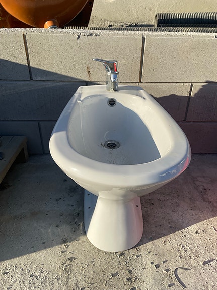 Hvit bidé med blandebatteri