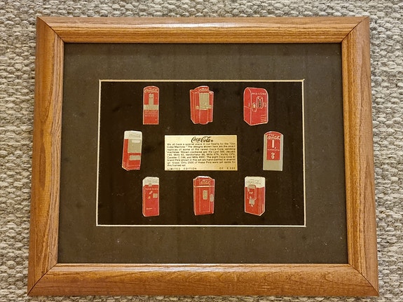 Flott innrammet pinssett - Gamle Coca-Cola automater