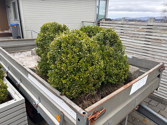 Må taes opp og hentes . 170 høy . 370 lang . 6 busker.