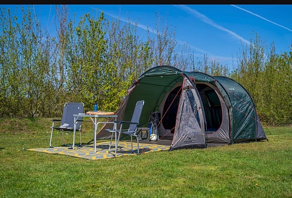 Flott spikertelt på Orsand Camping – strand, servicebygg og lekeplass