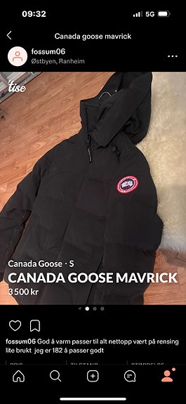 Canada Goose Vinterjakke Svart L Herre kjøpt for 8 k selges for 2,5