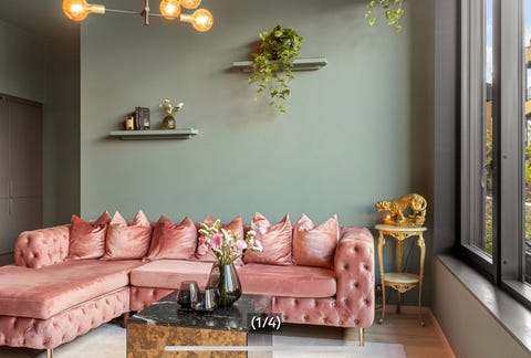 Rosa velour Chesterfield sofa