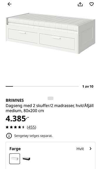BRIMNES dagseng med to skuffer, inkludert to madrasser og overtrekksmadrass