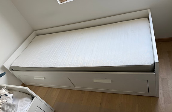 IKEA dagseng / enkeltseng med skuffer og madrass, hvit
