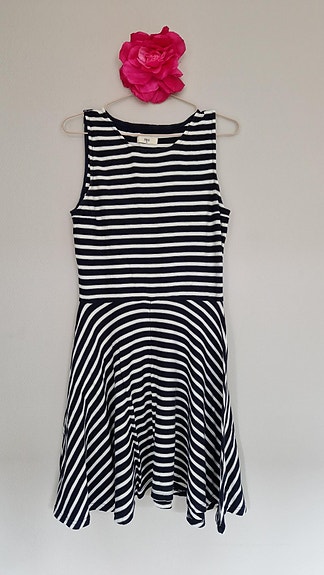 Blå kjole med hvite striper fra det danske merket Envii