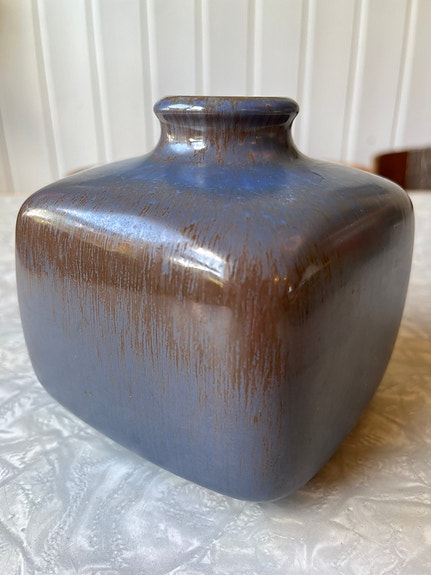 Vintage blå keramikk vase fra danske knabstrup, dansk design, midcentury modern