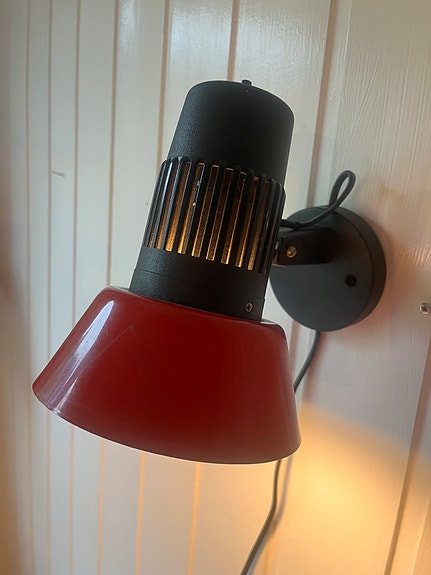 Herlig og rød vintage vegglampe/spot fra danske Lyskær, dansk design
